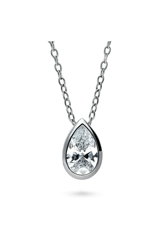 Sterling Silver Solitaire Pendant Necklace for Women, 0.8 Carat Bezel Set Pear Cut Cubic Zirconia CZ 18 inchSterling Silver Solitaire Bezel Set Cushion Cut Cubic Zirconia CZ Anniversary Pendant Necklace for Women, Rhodium Plated 1.25 Carat 16 inch $35.94 Was $41.93
