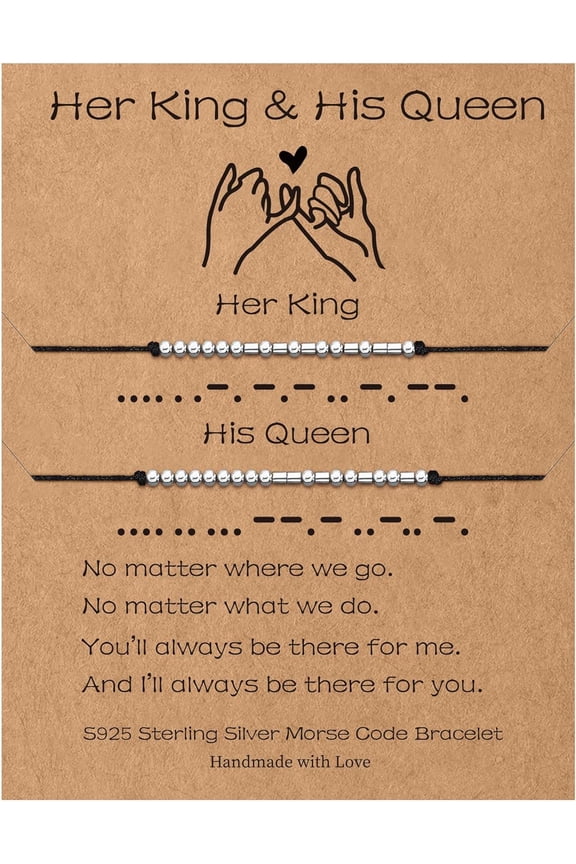Sterling Silver Morse Code Bracelets Gifts for Women, 2pcs Pinky Promise Couple Matching Bracelets Friendship Bracelets Funny Inspirational Birthday Friendship Gifts for Women Friends Sister CouplesMorse-Code Bracelets For Women Men, String Bracelets, Inspirational Bracelets Gifts For Couples Mom Daughter Best Friend Gift For Girls Women