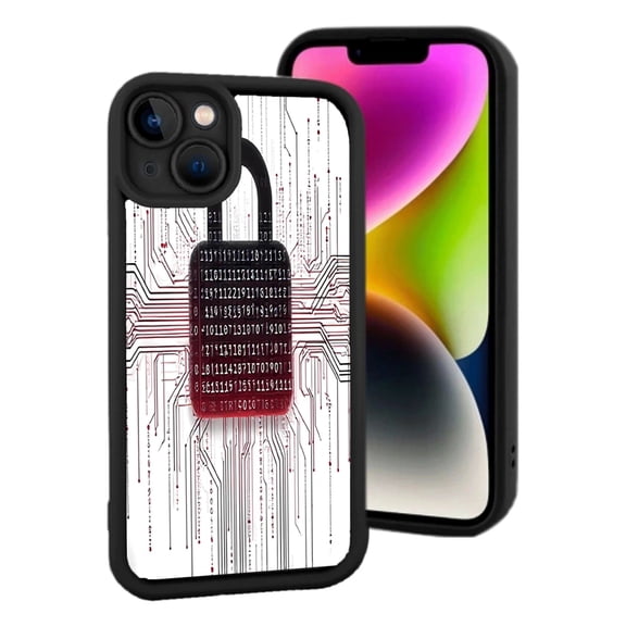 iPhone 15 Yellowing Resistant Lightweight Case - Cybersecurity Design with Pattern Binary Code & Padlock Motif