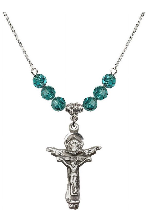 18-Inch Rhodium Plated Necklace with 6mm Blue March Birth Month Stone Beads and Trinity Crucifix CharmOther options to consider(16)