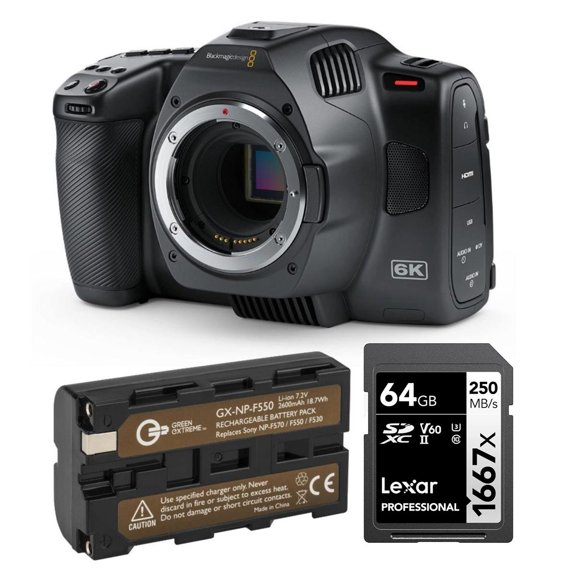 Blackmagic Design Pocket Cinema Camera 6K G2 Bundle with 128GB SDXC Memory Card, Green Extreme Rechargeable Lithium-Ion Battery Pack $2,195.00
