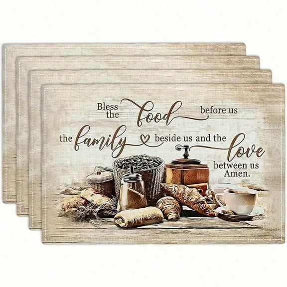4pcs Linen Placemats, Linen Machine Washable, Religious Bless The Food Before Us Design, 12x18 Inch, For Kitchen Dining Table Decor $13.99