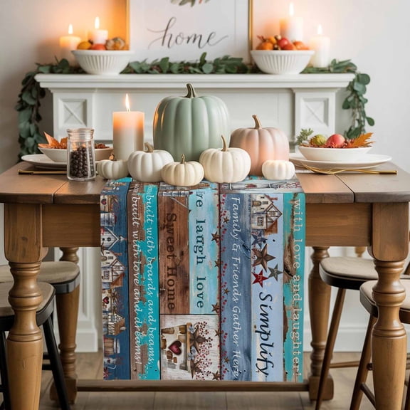 Bless This Home Table Runner, Farmhouse American Country Wood Grain Cotton Linen Kitchen Table Decoration Washable Dining Tabletop Runners for Home Party Decor 13x36 Inches From $15.99