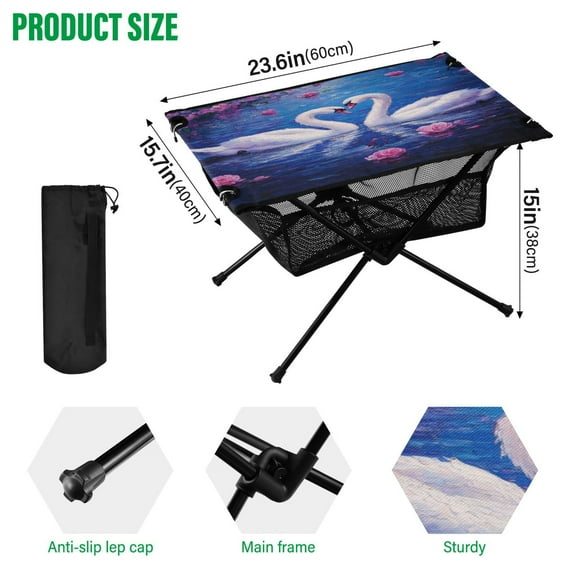 current price $46.99BZSMCE Camping Tables Simple Folding Table Blissful Swans in Blue Pattern Size:23.6*15.7in