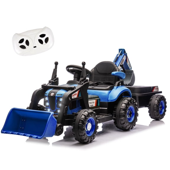 TOKTOO 24V Powered Ride on Tractor Max 4.3Mph w/ EVA Tires, Tippable Trailer, Remote Control, Tractor Ride on Toy for Kids- Blue From $149.99