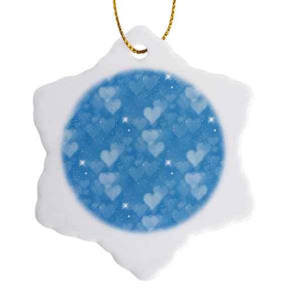 3drose, Light Blue Image of Sparkle Heart Bokeh Pattern, 3 inch Snowflake Porcelain Ornament From $14.89