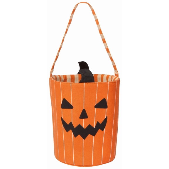 Halloween Gingham Tote Basket New Jute Canvas Bucket Halloween Decoration Gifts, Orange