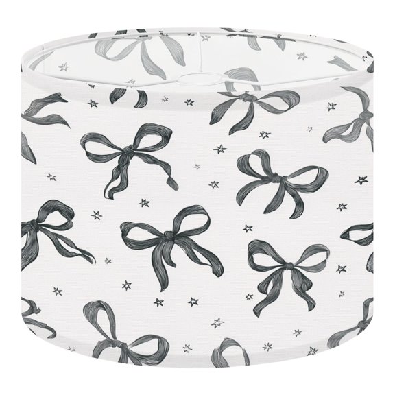 Linen Drum Lampshades Hand Drawn Ribbon Bows Small Stars Black White 13"x13"x10" Light Shade for Table Lamps Floor Lamp Shades Lampshade Replacement Assembly Required From $39.99