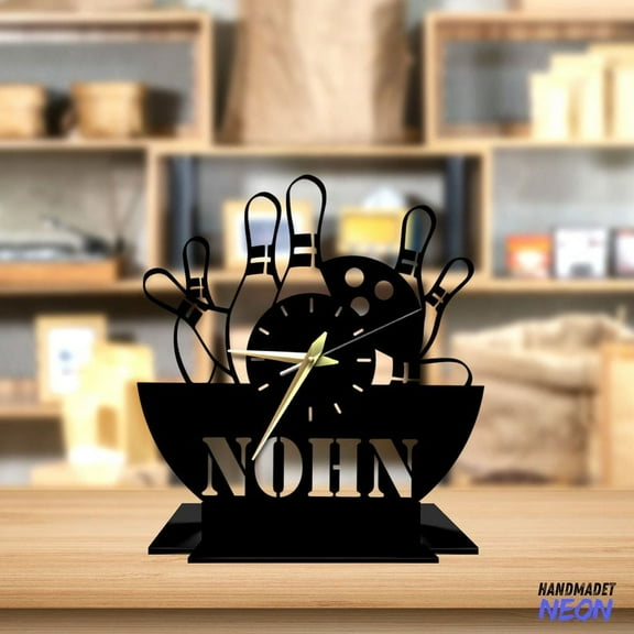 Handmadetneonsign Bowling Tabletop Metal Clock, Bowling Office Desktop Clock, Bowling Clock Home Decor 75903