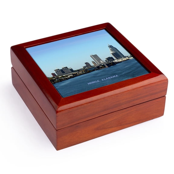 current price $36.993dRose, Mobile, Alabama Skyline, Jewelry Box 5.5x5.5 inch with 4 inch tile