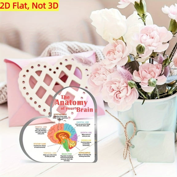 Decorative Sign 3.9X3.9 Inch Educational Brain Anatomy Acrylic Heart Plaque Desk Decor Figurine With Psycho Affirmation Suitable For Office School Home Decor Desk Accessory Minimalist Decor