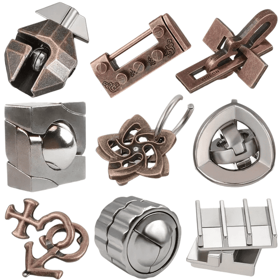 current price $24.99Set of 9 Metal Brain Teaser Puzzles Set 3D Metal Puzzle Interlocking IQ Mind Challenge Games for Adults Desk Brain Training, Basket Filler Stuffers, Puzzle Difficult Magic Mind Challenge