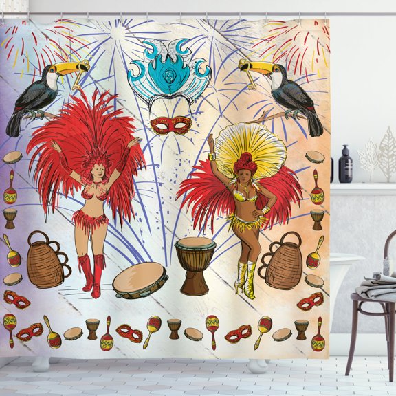 current price $36.99Carnival Shower Curtain, Pattern of Beautiful Dancing Ladies in Various Colors of Brazil Joyous Theme, Fabric Bathroom Set with Hooks, 69"W X 75"L Long, Multicolor, by Ambesonne