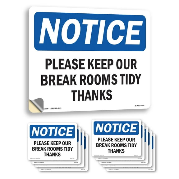 Please Keep Our Break Room Tidy Thanks OSHA Notice Vinyl Decal Label 5 Inch x 3.5 Inch - 10 Pack From $26.99