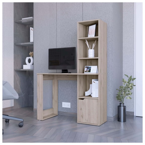Newboti Furniture Broadmoor Computer Desk with 4-Tier Bookcase and 1-Door Cabinet Gray BN.0311 $224.89
