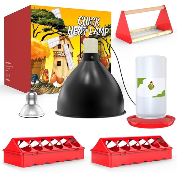 -in-One Chick Brooder Kit with 75W Adjustable Heat Lamp, Spill-Proof Feeder & Waterer, and Rust-Proof Perch Stand for 5-15 Chicks