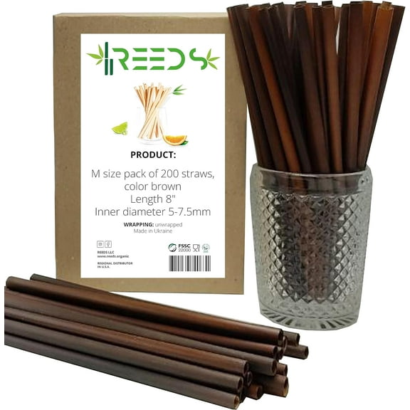 current price $11.99Reed Drinking Straws, Ecological, Biodegradable, 100% Plant-based, Brown Color, Great for Smoothies, Milkshakes, Frozen & Signature Cocktail, Hot Tea and Coffee, 200 ct. Tall 8 inch, Medium