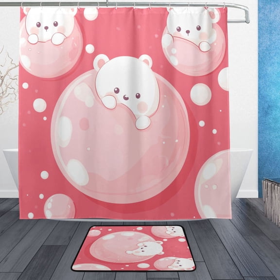 BZSMCE Shower Curtain and Bath Accessory Set,Bubble Bear Bliss Pattern $33.43