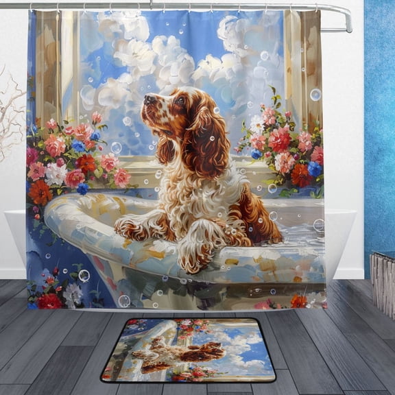 BZSMCE Shower Curtain and Bath Accessory Set,Bubble Bliss with A Cocker Pattern $33.43