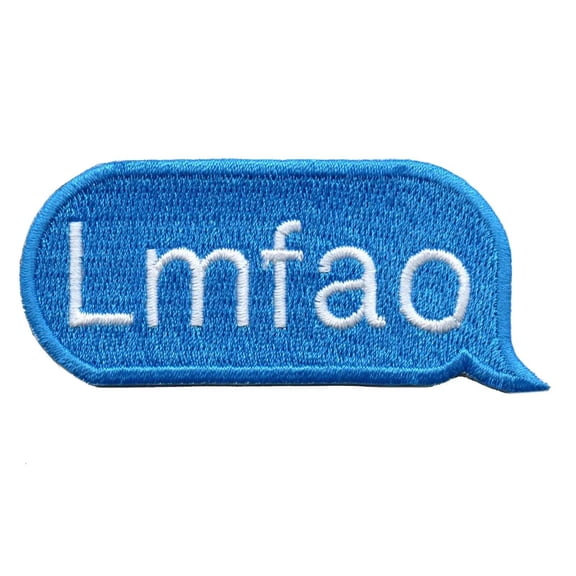 current price $13.99LMAO Blue Text Script Word Bubble Emoji Iron On Embroidered Patch