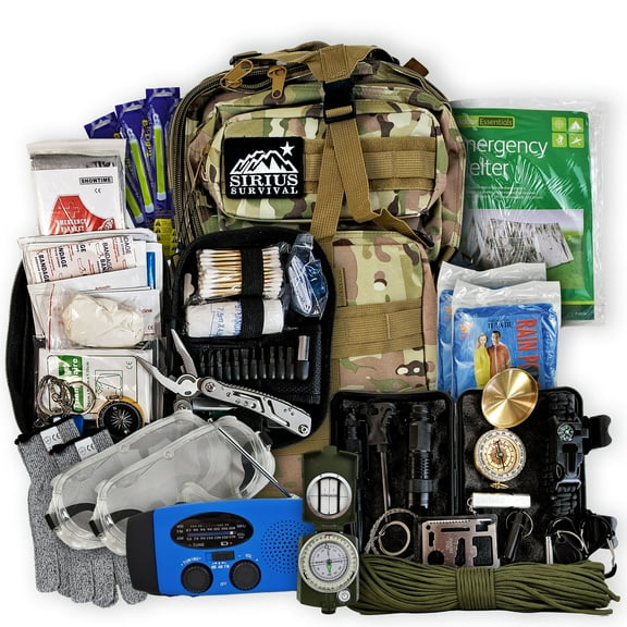 Sirius Survival Bug Out Bag - Premium Bugout Backpack Pre-Packed Survival Kit - Ultimate Bug Out Bag Backpack Survival Kit - Comprehensive Survival Bag - Go Bag Emergency Backpack - Camo From $349.95