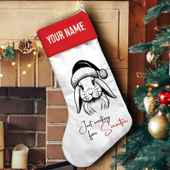 Lotusprinthandmade Personalized Cute Rabbit Lovers Christmas Stocking (L), bunny rabbit christmas stocking, personalized bunny stocking From $32.95
