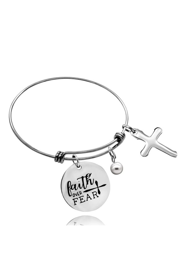 Stainless Steel Faith Over Fear Cuff Bangle Cross Pearl Charms Bracelet Christian Jewelry25 out of 5 Stars. 2 reviews