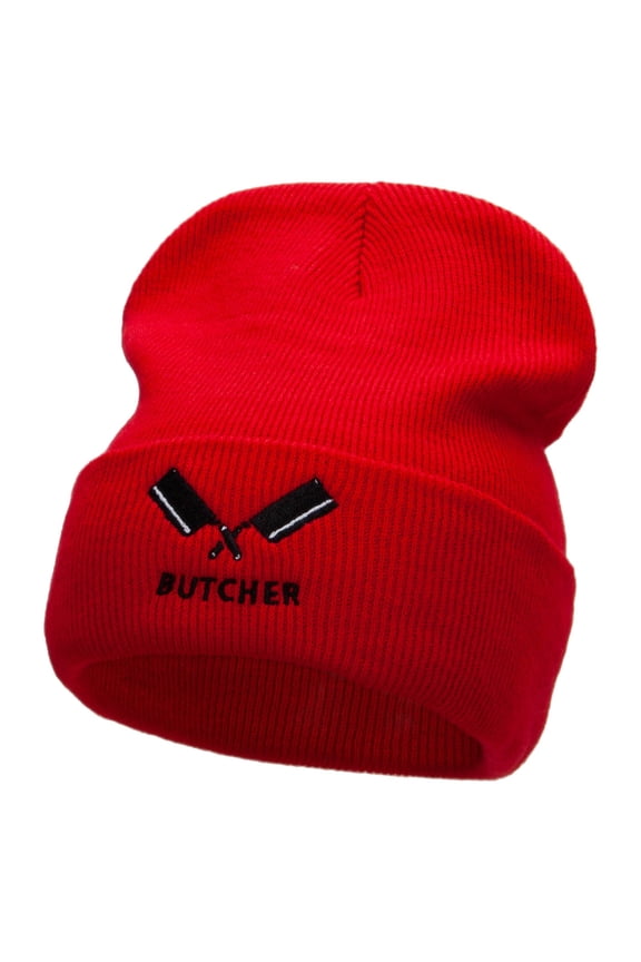 Butcher Embroidered 12 Inch Long Knitted Beanie - Red OSFMWikjxiz Pig Butcher Hats for Men Women Adjustable Flat Bill Brim Dad Hats Golf Baseball Cap Black