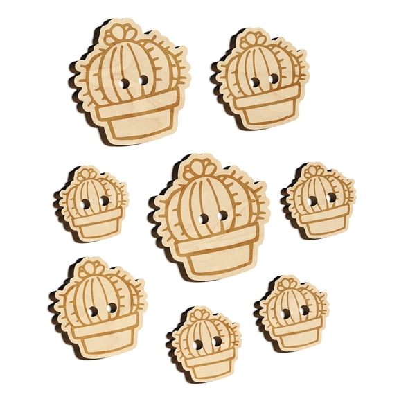 Available in additional 4 optionsHand Drawn Cactus Doodle Wood Buttons for Crochet Knitting Sewing DIY Craft - Various Sizes (8pcs)