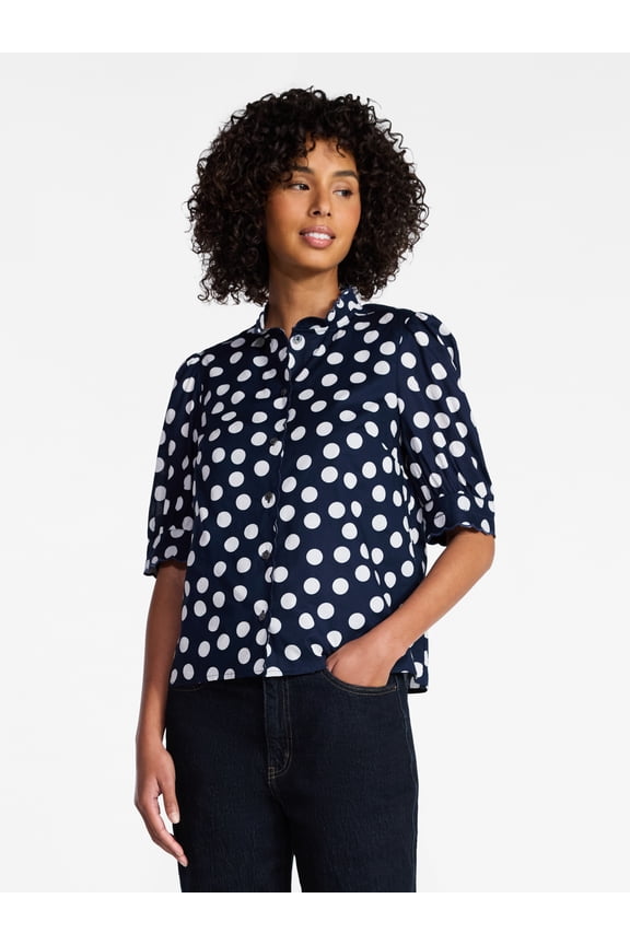 Women's and Women's Plus Lace Inset Button Front Cotton Shirt with Short Sleeves, Sizes XS-4X35 out of 5 Stars. 3 reviews