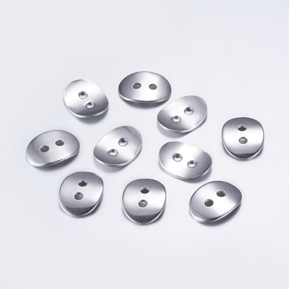 current price $10.95100 pc Tarnish Resistant 201 Stainless Steel Buttons Oval 2-Hole Stainless Steel color 17x12x1mm Hole: 1.8mm