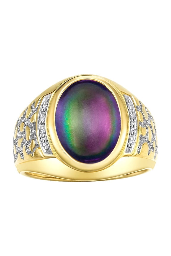 Men's Rings Yellow Gold Plated Silver Nugget Ring with Cabochon Gemstone & Diamonds Alexandrite Rings For Men Size 9 From $204.30