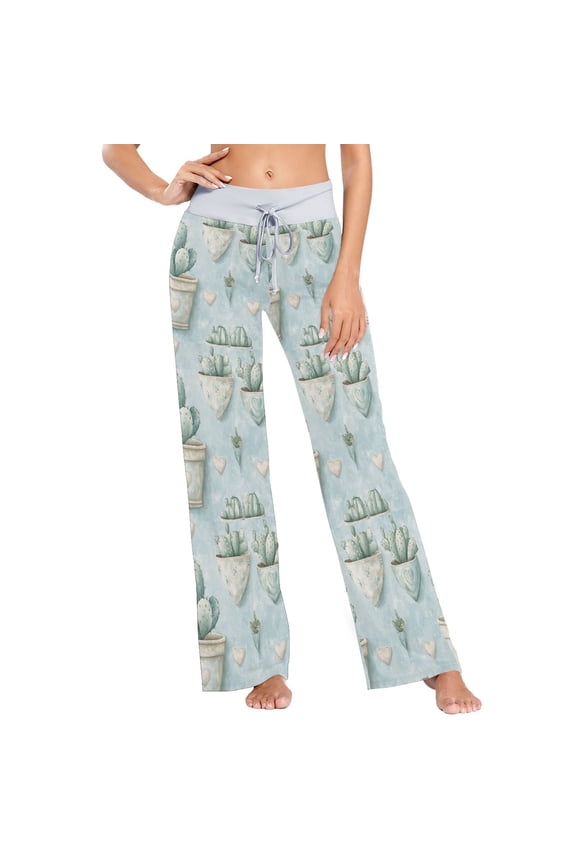 Western Cactus Print Women's Straight Lounge Pajama Pants,The Epitome of Relaxed Sleepwear-Popular in Cacti Pants