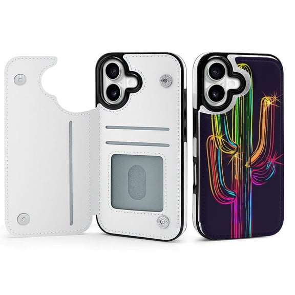 Available in additional 2 optionsWallet Case For Apple iPhone Air / 17 Pro / 17 Pro Max Series with Card Holder, PU Leather Kickstand Card Slots Screen Protector Included For iPhone 17 Series, Neon Cactus