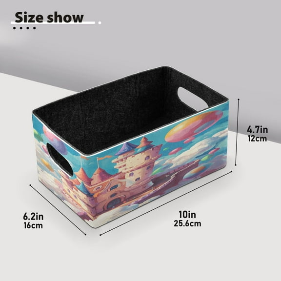 BZSMCE Shelf Baskets Cartoon Candy Castle Painting Pattern Storage Cube Bins 10.1*6.3*4.7in Set of 2 $17.59