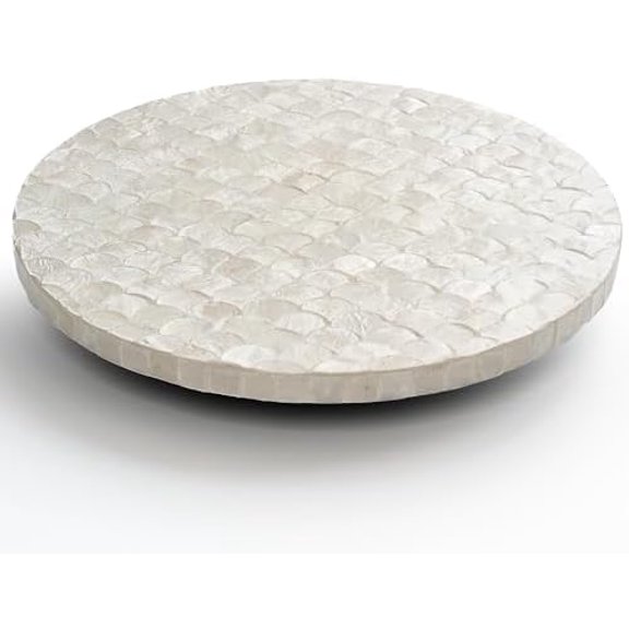 current price $41.9312 Inch Capiz Lazy Susan, Decorative Lazy Susan Turntable Centerpiece for Dining Table, Kitchen Counter, Round Mother of Pearl Capiz Shell Spinning Tray for Countertop & Tabletop (White)$$
