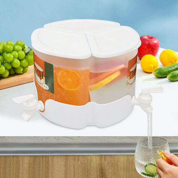 Clearance Under $20 Beverage Dispenser For Fridge Rotating Plastic Drink Dispenser With Spigot 3Grids Cold Kettle Refrigerator Iced Lemonade Container