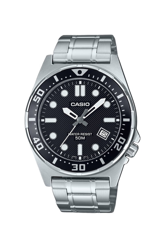 Casio MRW200H-1BV Men's Black Resin Strap 100M Sports Easy Reader Analog Watch$43.00current price $43.00Women's LTPV002D-7A Silver Stainless-Steel Quartz Watch