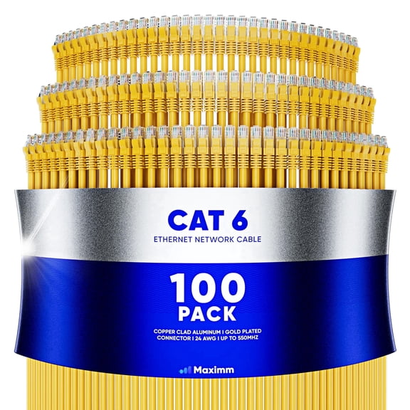 Maximm Cat6 Ethernet Cable 100-Pack 20 ft – CCA LAN Network Patch Cords, RJ45, Yellow From $236.99