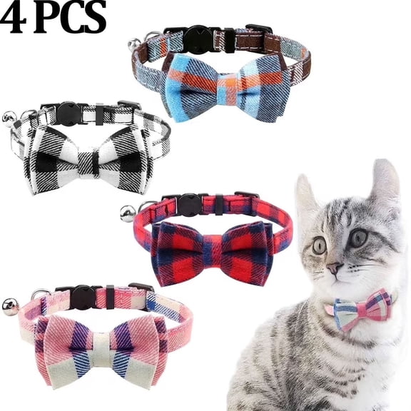 current price $10.596Pack Super Buddy Cat Collars Breakaway with Cute Bow Bell - Kitten Collar Plaid Cat Collar with Removable Bowtie Cat Collar