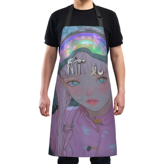 current price $15.99Anime Girl and Cat Chef Kitchen Apron with Pockets for Women Waterproof Aprons for Cooking Baking
