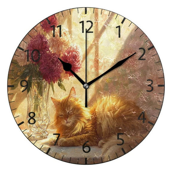 Clearance YAZAOO Decorative Wall Clock Size:25cm Sleeping Cat Flowers Sunlight Design Pattern Clock From $17.79 Was $19.99