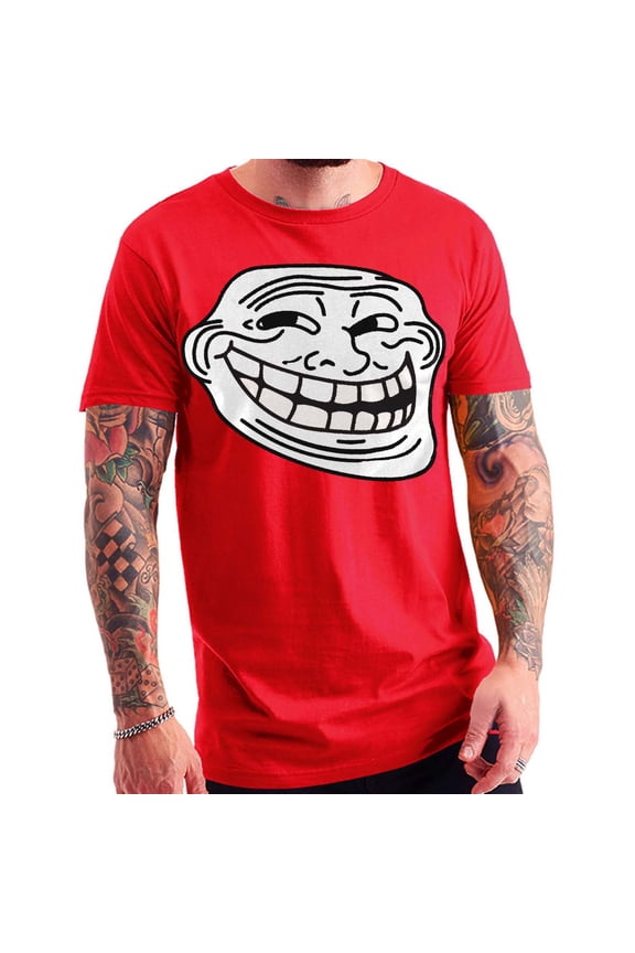 Oversized Troll Face Meme Graphic Design Lane Seven Ring Spun Jersey Cotton Short Sleeve Premium T-Shirt - Red 3XL From $24.99