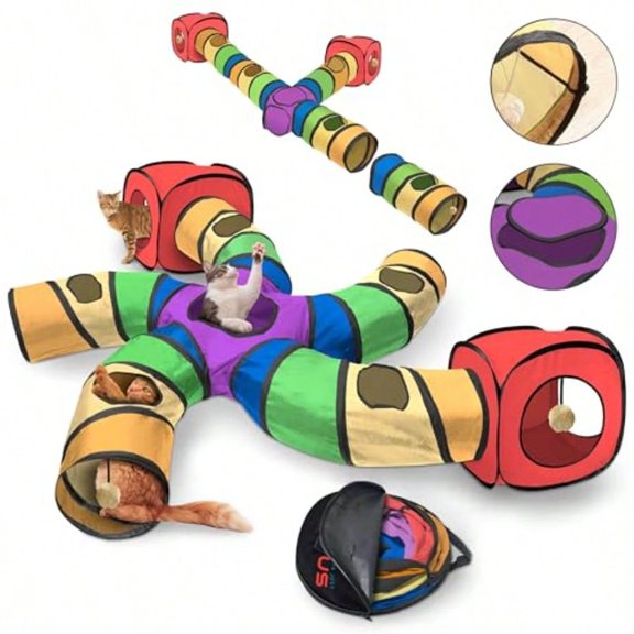 Genius Cat Tunnels for Indoor Cats - Large Customizable 5-Way Tunnel Tube System with Hanging Toys, Storage Bag, Tear-Resistant & Collapsible Play Center for Kittens, Small Dogs, & Rabbits $99.49