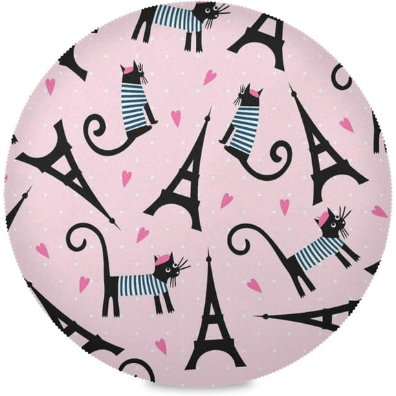 60"X 60" Paris Eiffel Tower Cat, Elastic Fitted Edged Round Tablecloth Fade Resistant Anti-Shrink Table Cloth Washable Table Cover for Indoor or Outdoor and Anywhere You Wanna use it From $15.99