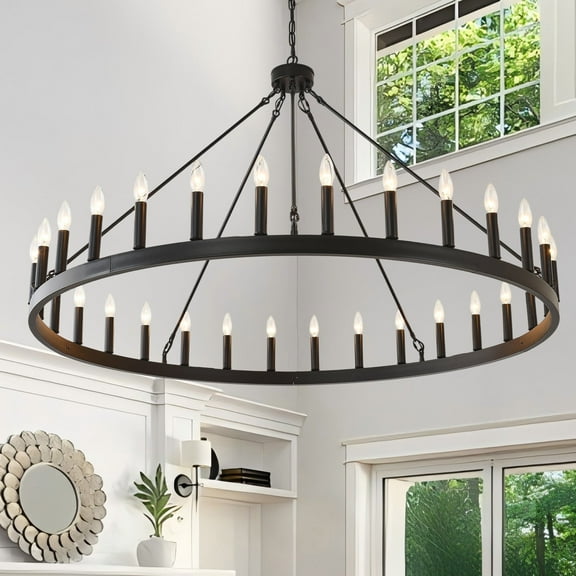 53-Inch Large Black Farmhouse Wagon Wheel Chandelier – 30-Light Industrial Rustic Pendant Light for High Ceiling Dining Room, Living Room, Porch, Foyer, Entryway From $169.32