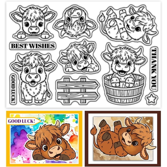 current price $6.99Funny Highland Cattle Clear Stamps Cartoon Cute Cartoon Animal Transparent Stamps Silicone Clear Stamp Seals for Carding Making DIY Scrapbooking Photo Album Decoration 4.3x6.3 inch Gray