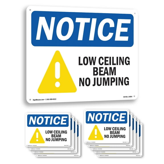 Low Ceiling Beam No Jumping OSHA Notice Rigid Plastic Sign 14 Inch x 10 Inch - 10 Pack From $26.99