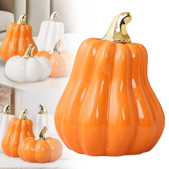 Clearance Desktop Ornament under $5,Gold Ceramic Pumpkins Artificial Pumpkin Statues Pumpkin Decorations Autumn Thanksgiving Halloween Family Table Decorations