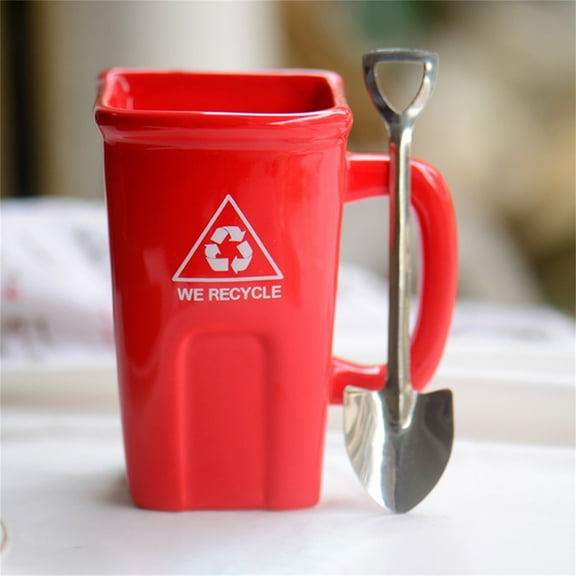 Clearance TXYRDXK Recycle Bin Coffee Mug with Handle and Shovel, Funny Trash Can Mug Porcelain Coffee Cup, Novelty Garbage Bin Ceramic Mug Porcelain Tea Cup Water Drinking Cup Milk Mug Was $29.98